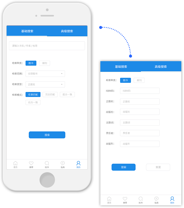 可根据关键字、时间段来查询图书、期刊的馆藏信息,一键登录查询读者的个人借阅图书情况、图书馆公告信息。