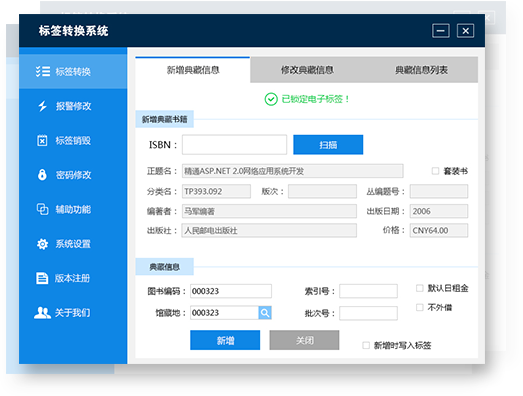 RFID电子标签转换是智慧图书馆建设中必不可少的图书建库步骤。 一系统多用:可兼容高频和超高频两种电子标签的转换。