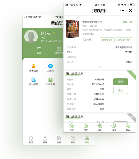 北创“掌上图书借阅”微信小程序可实现读者无需到图书馆, 即可办理借书、预借、续借、查询,在馆、外借状态一目了然, 让你想要的书尽在掌握。
